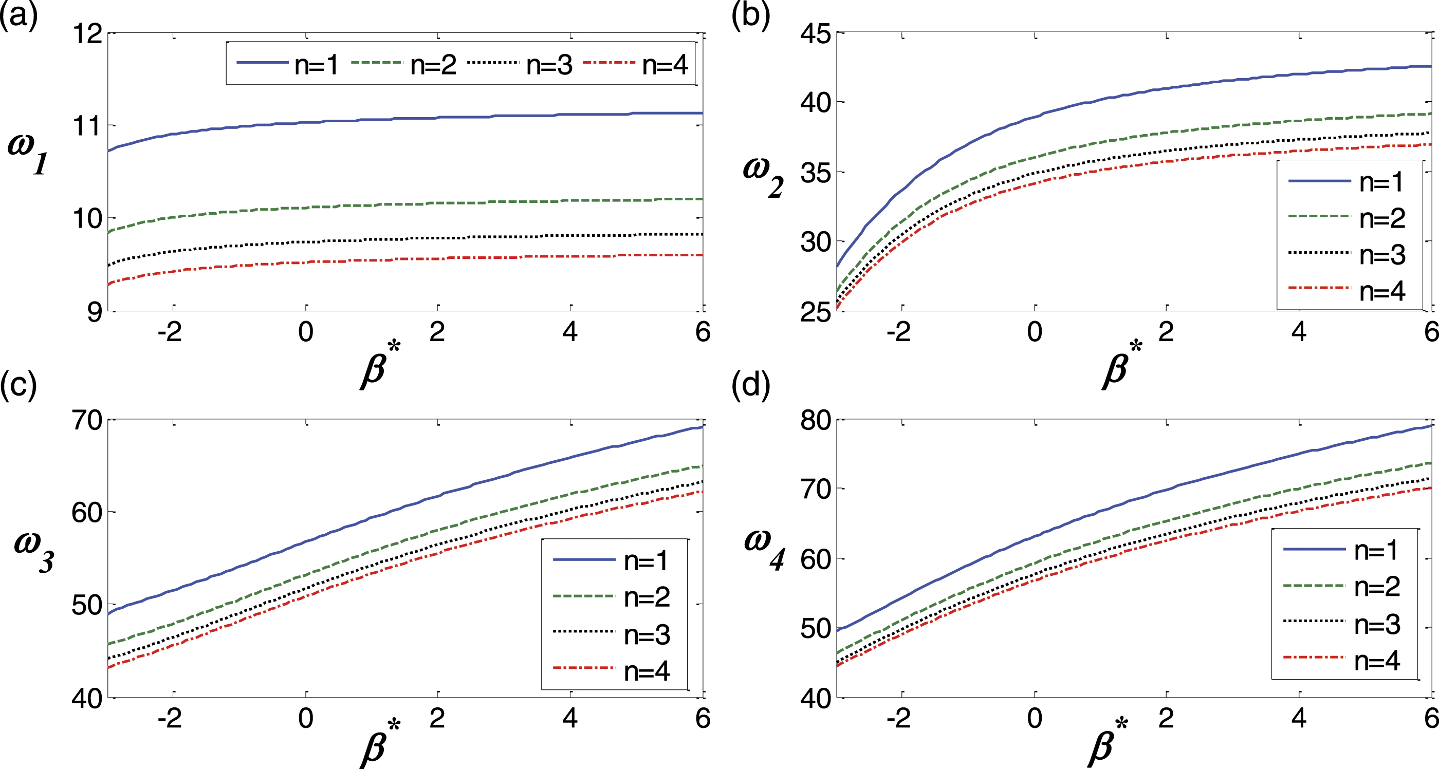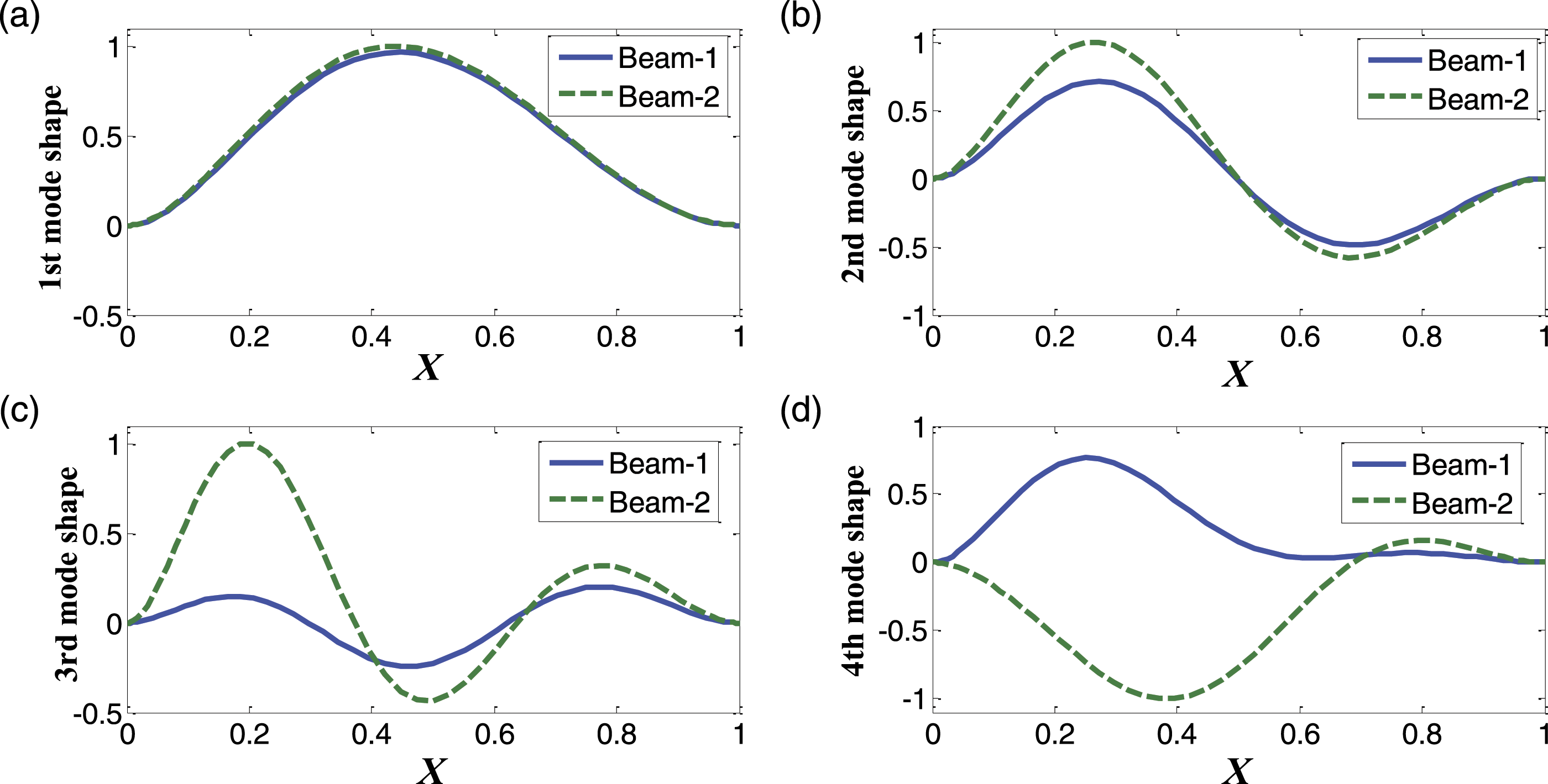 In Figure 2, the influence of the height ratio on the first four natural frequencies of a CC-CF double beam with Variations of the first four natural frequencies as functions of the height ratio of CC-CF beams with