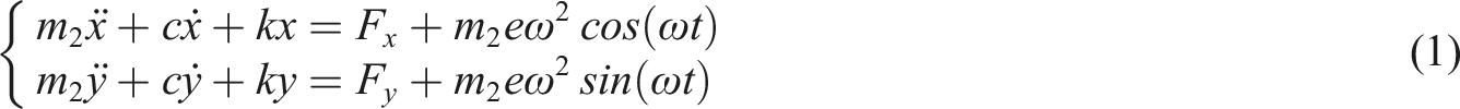 When the high-pressure rotor and the rubbing contact surface have a short-term rubbing contact, it is simplified as an elastic contact, and the thermal effect generated during the rubbing process is ignored. Assuming that the friction between the high-pressure rotor and the rubbing contact surface follows the Coulomb friction law, and the effects of gravity and gyroscopic moment are negligible and thus not considered, when rubbing fault occurs in the high-pressure rotor, the dynamic equation of the system is as follows: