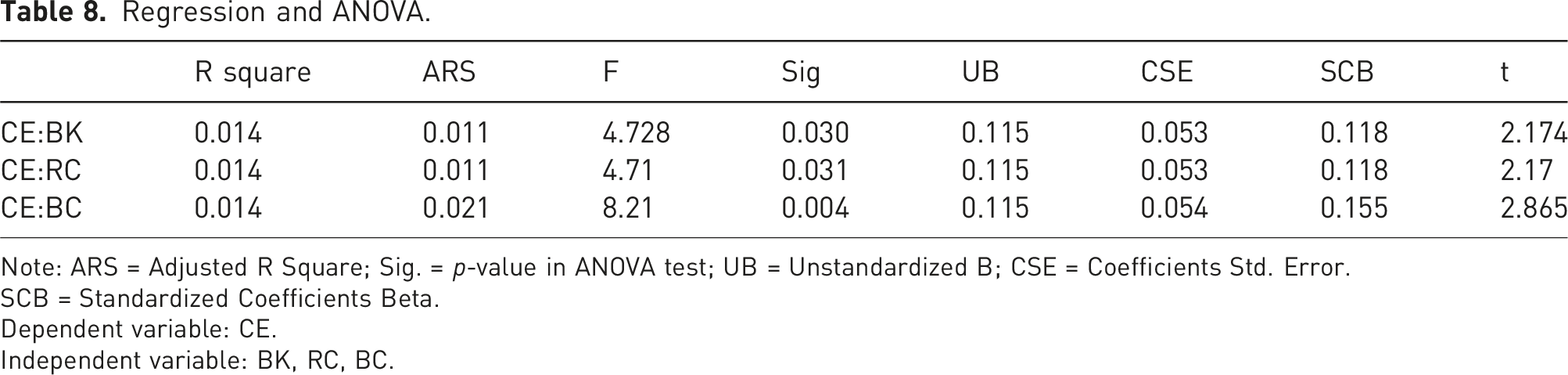 Dependent variable: CE.