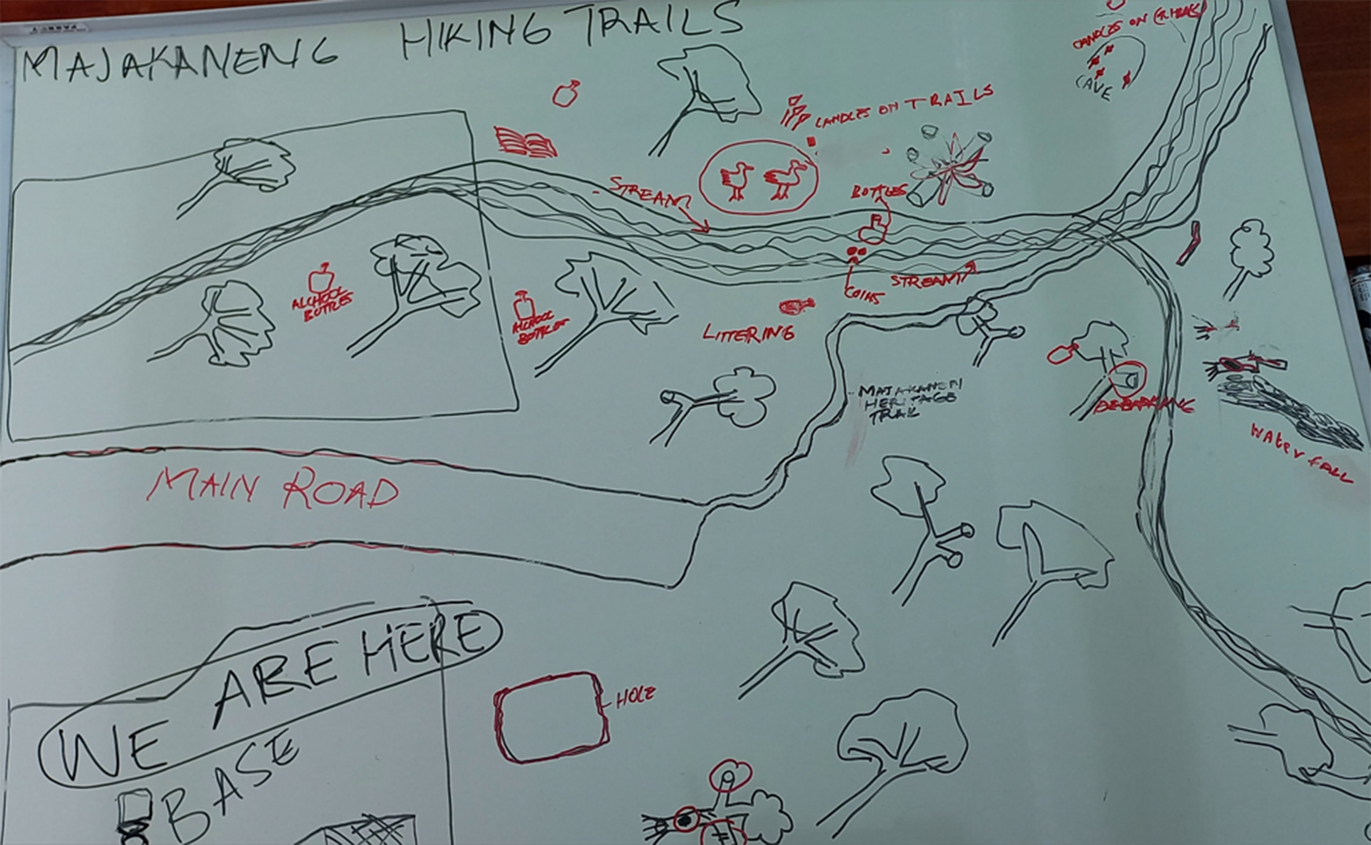Participatory community mapping from phase 1 in Majakaneng showing natural freshwater and human impacts