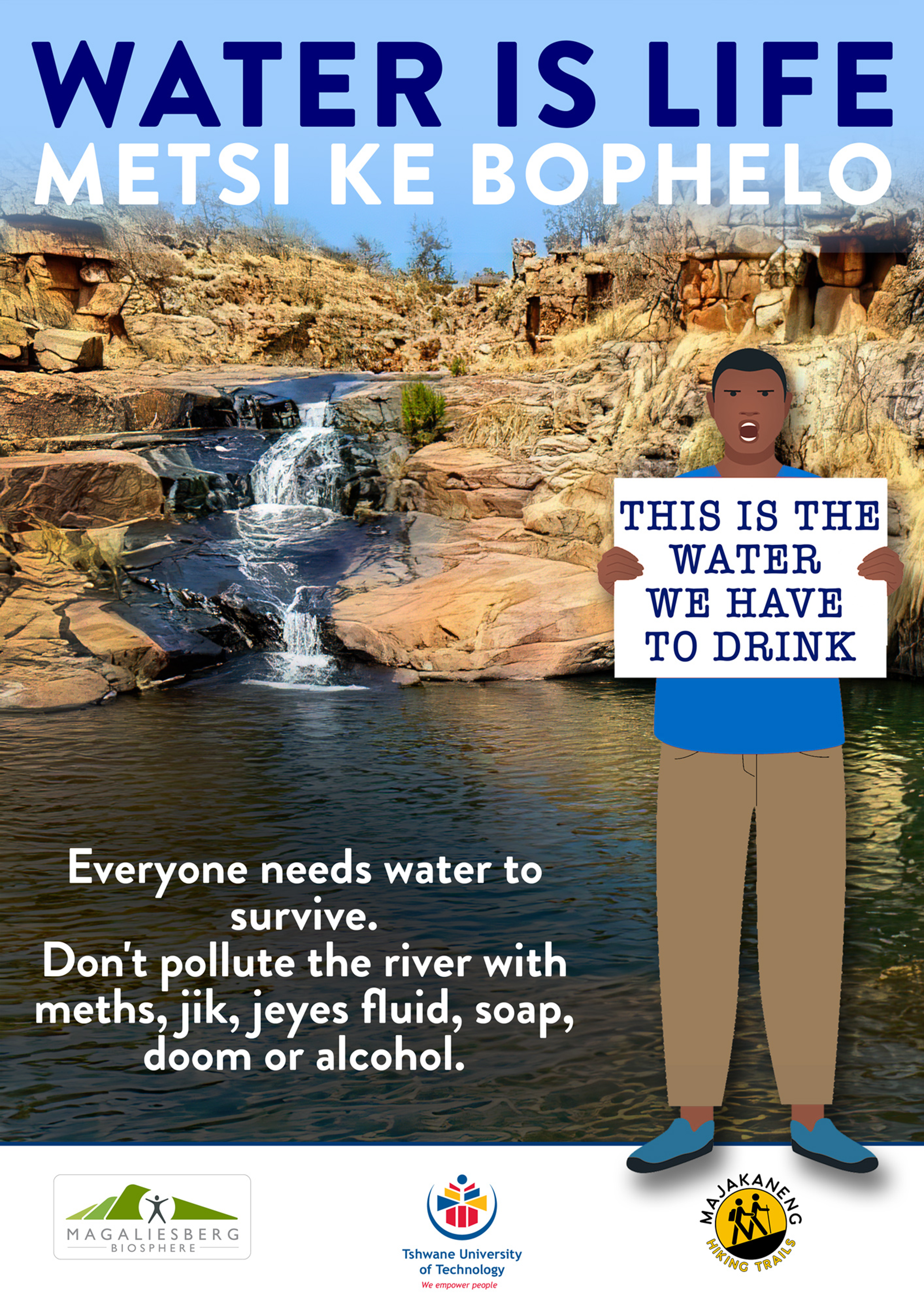 After several changes, four signs were printed in A0 format and erected by the Rangers in Mission in phase 4. An A5 flyer format was printed for distribution at church gatherings and taxi ranks. One sign was removed from circulation due to its reference to the controversial practice of animal sacrifice which over extended the brief of this study. The signs conveyed critical messages about environmental stewardship and water conservation. One sign, intended for base camps or other parking areas, displayed the message: “Drop your litter here.” Another emphasized the importance of making responsible choices using information, from PAR focus groups and interviews and highlighting human impacts while also offering practical alternatives to reduce harm (Image 5). A third sign showed a natural pool surrounded by rugged rocks, with the message: “This is the water we have to drink” (Image 6). The intention was an appeal to Ubuntu which in Africa stands for communal values, interconnectedness, compassion and mutual responsibility (Ewuoso, 2019; Stork & Öhlmann, 2025). The fourth sign displayed a crystal clean river within a forested kloof, accompanied by the message: “Clean, drinkable and holy water - let’s keep it this way.” Both the third and fourth signs included the heading “Water is Life” written in English and the main local vernacular Setswana, to elevate the importance of preserving water resources. During a follow up call on 10 July 2024 one of the rangers summed up the status quo: “The situation right now, I might say 57% under control. Some of the people are calling in advance so that they let us know they are coming. There is a fee they are paying of R20 per person. The fee is reducing the number of the churches and religious gathering. You know you can’t fix everything there are others arrogantly doing things that are not supposed to be done in the mountain.” Final sign displaying permissible activities in sacred natural sites whilst discouraging harmful practices A sign reminding people to protect natural water sources and invoking Ubuntu