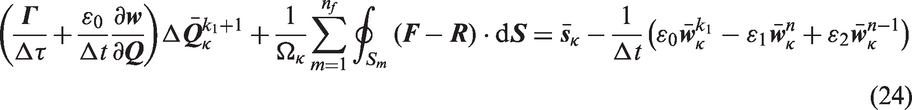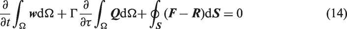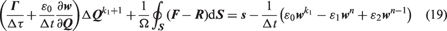 The preconditioned dual-time stepping method was used to improve the accuracy of discrete format. Compute the integral for equation (1) and introduce a preconditioned pseudo-time-derivative term
