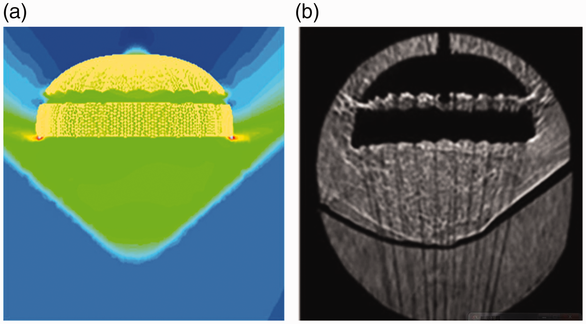 Drag coefficient. Shock wave standoff distance (here, Velocity streamlines around the canopy (a) without material permeability; (b) with material permeability (here, Pressure contours (Pa) around the canopy (a) without material permeability; (b) with material permeability.