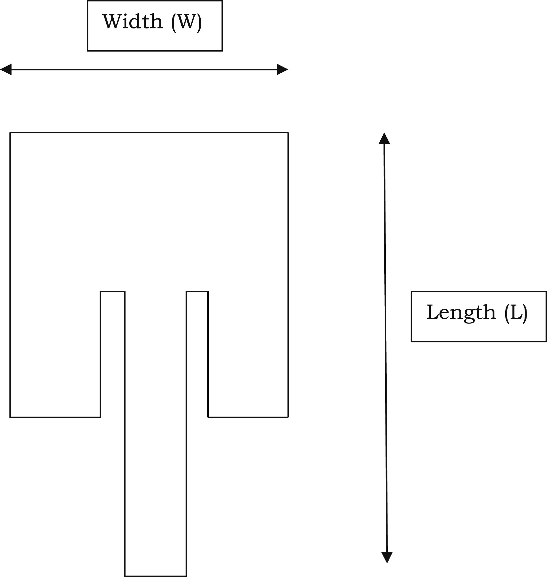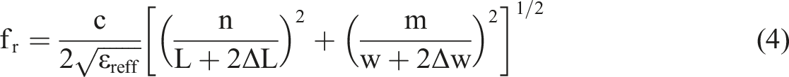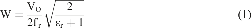 The proposed wearable patch antenna is built using the microstrip line inset feeding method. The inset feeding method is chosen because it gives the antenna a flat shape. The antenna’s working frequencies include 2.5 GHz, 3.5 GHz, 4.5 GHz, and 5.5 GHz, and it is unlicensed, thus it may be used for a number of applications. The patch antenna’s input impedance is 50 Ω. This antenna is built on a FR4 substrate with a low dielectric constant, which reduces surface wave losses. The substrate material has a dielectric constant of 4.4, a thickness of 1.6 mm, antenna dimensions of 35 mm × 35 mm, and a loss tangent of 0.02. The suggested antenna is constructed using the microstrip line feed technology. The geometrical parameters of antennas, such as patch width and length, were calculated using the equations below.