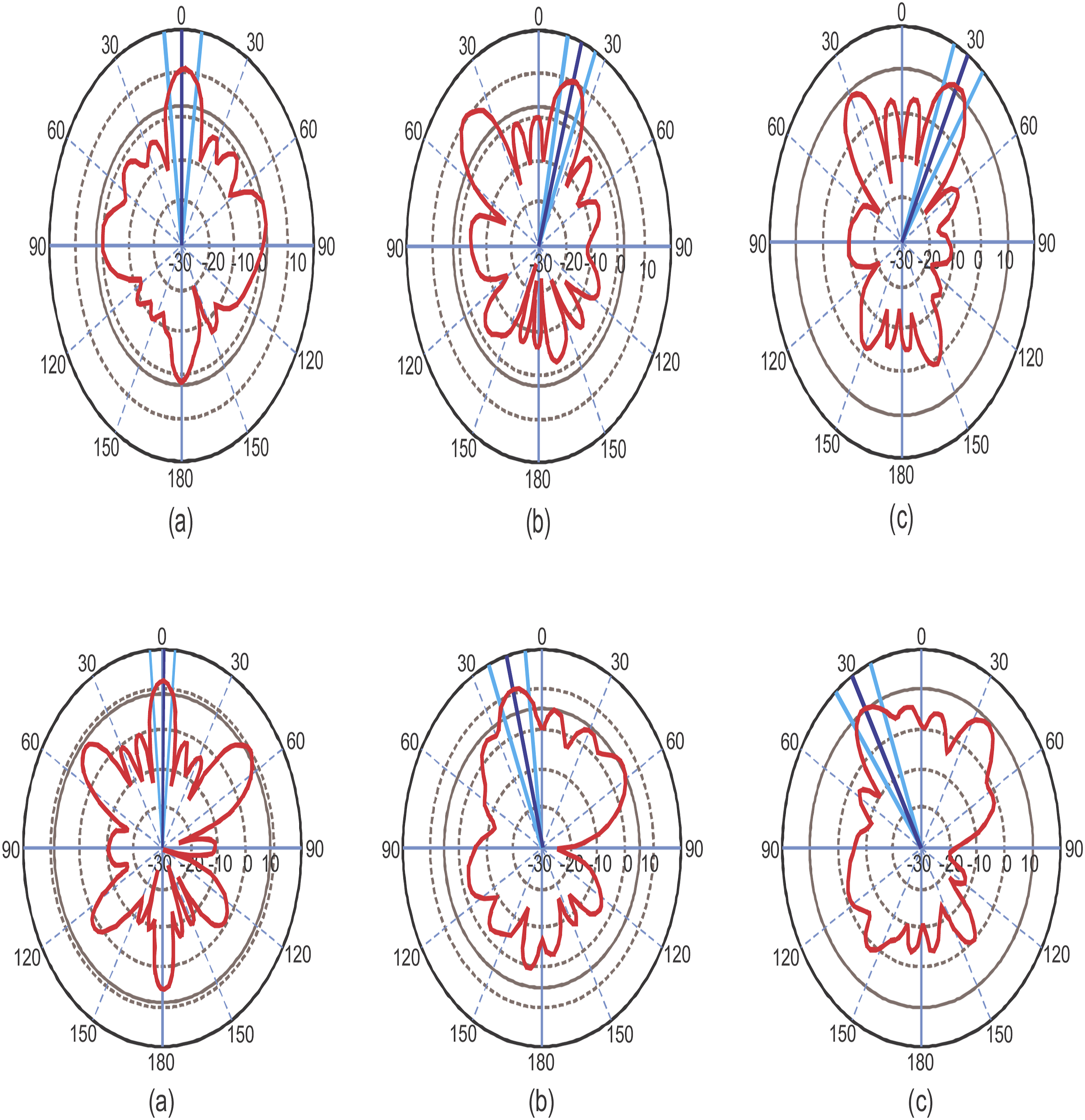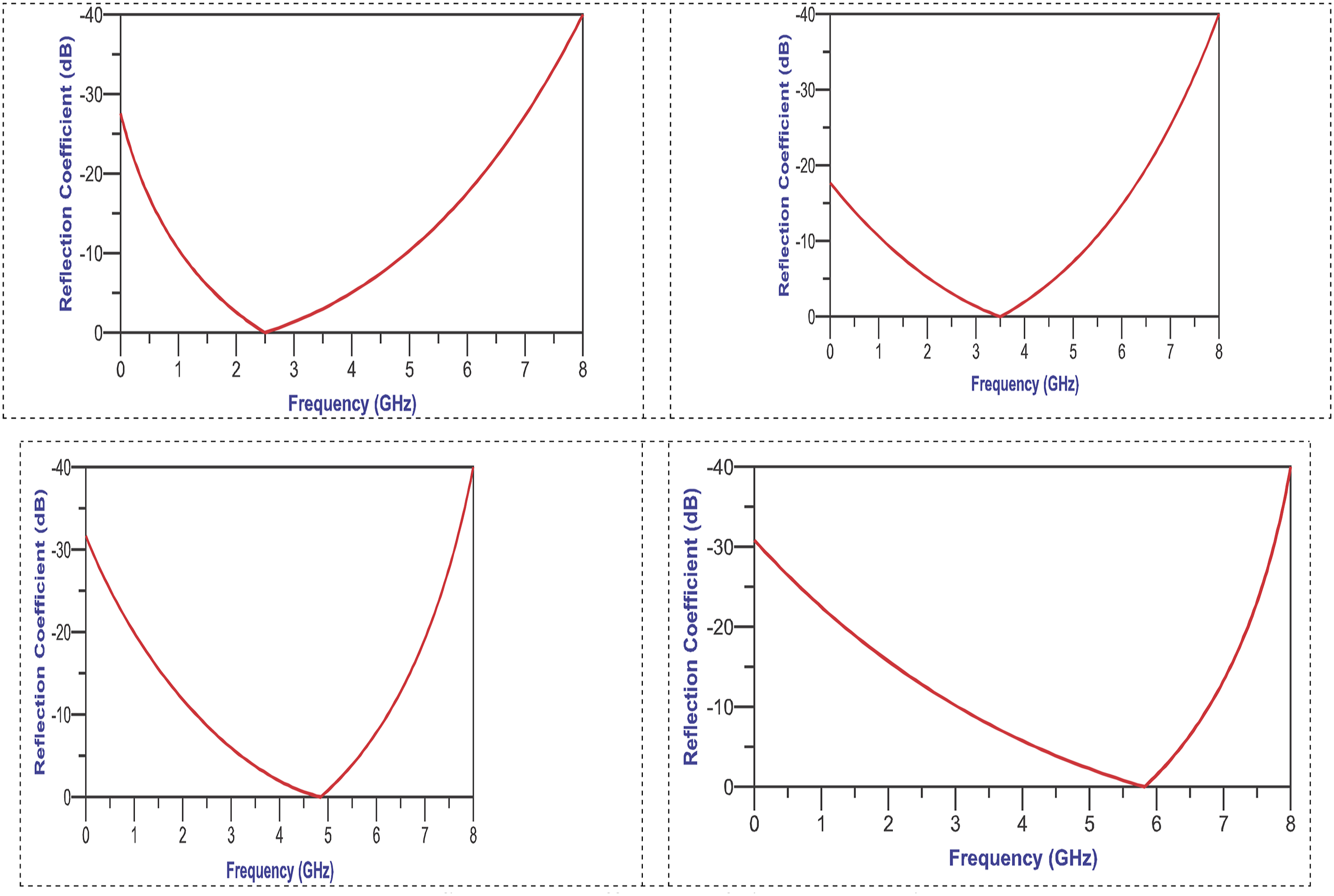 A microstrip antenna transmits and absorbs electromagnetic waves and is made up of conductive material, a dielectric substrate, and a ground plane. The ground plane and conductive material are often made of thin copper, which is a good electrical conductor. To enable air to reach the conductive substance, it is placed in the intermediate layer. The conductive material’s feeding mechanism, shape, and size (e.g., width, w, and length) all have an impact on its capacity to convert electromagnetic waves into electrical energy and vice versa. For different operating frequencies, Figure 3 shows the simulated S11 magnitude in dB for the suggested MSPA with FR4 antenna: −27.68 dB for 2.5 GHz, −18.78 dB for 3.5 GHz, −32.72 dB for 4.5 GHz, and −31.82 dB for 5.5 GHz. The simulated VSWR of the suggested MSPA for different operating frequencies is shown in Figure 4: 2.5 GHz has a frequency of 1.2, 3.5 GHz has a frequency of 1.75, 4.5 GHz has a frequency of 1.55, and 5.5 GHz has a frequency of 1.6. Figure 5 depicts the proposed MSPA simulated gain for different operating frequencies. The gain at various operating frequencies is shown in the graph: 2.5 GHz is 4.2 dB, 3.5 GHz is 6.4 dB, 4.5 GHz is 7.8 dB, and 5.5 GHz is 7.5 dB. Figure 6 illustrates the antenna’s radiation pattern. From 0 to 180°, theta values may be obtained. As can be seen, the main lobe of the antenna emits the bulk of its power toward the front, implying a high front-to-back ratio. Reflection coefficient of the proposed structure. VSWR of the proposed structure. Gain of the proposed structure. Radiation pattern of the proposed structure.