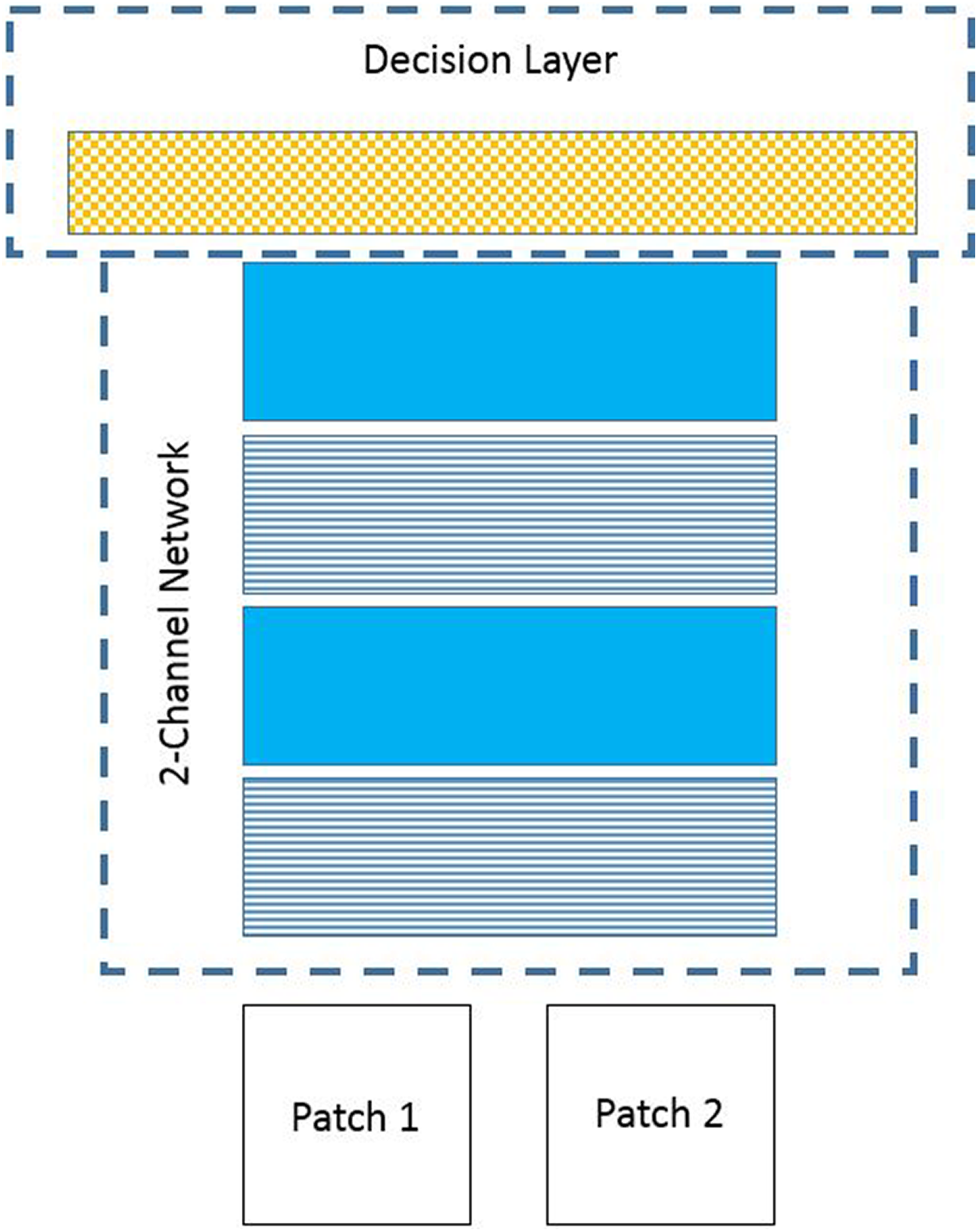 In the proposed method, a CNN (or ConvNet) is used for matching of 2-D image slices. Convolutional neural network is a type of feed-forward artificial neural network in machine learning that is proven to be successful for image and video analysis. The input for the network is an image pair of 2-D slices and the output is a similarity score. Due to the lack of training data for the deep CNN, the proposed method uses a pretrained CNN (Figure 2) described by Zagoruyko