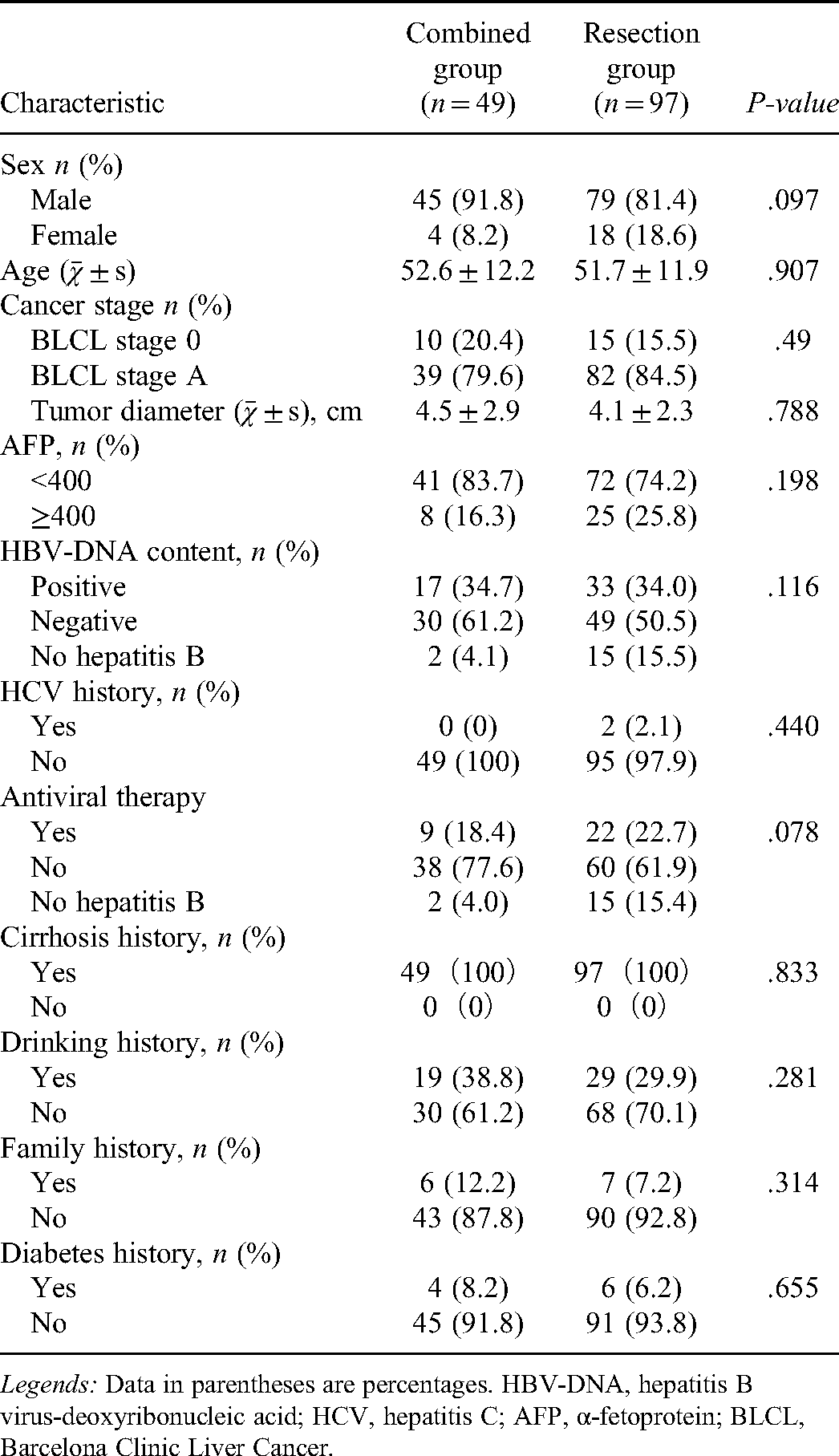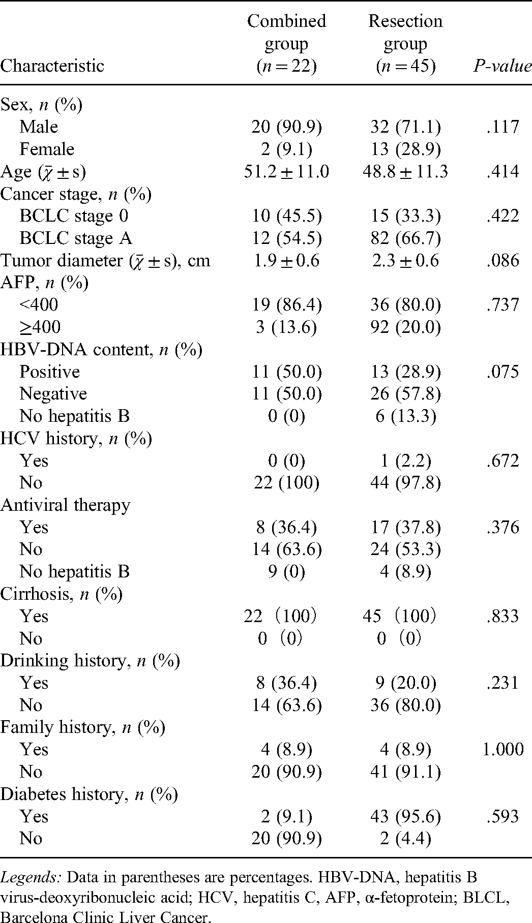 Baseline demographic and clinical characteristics of the patients with single HCC