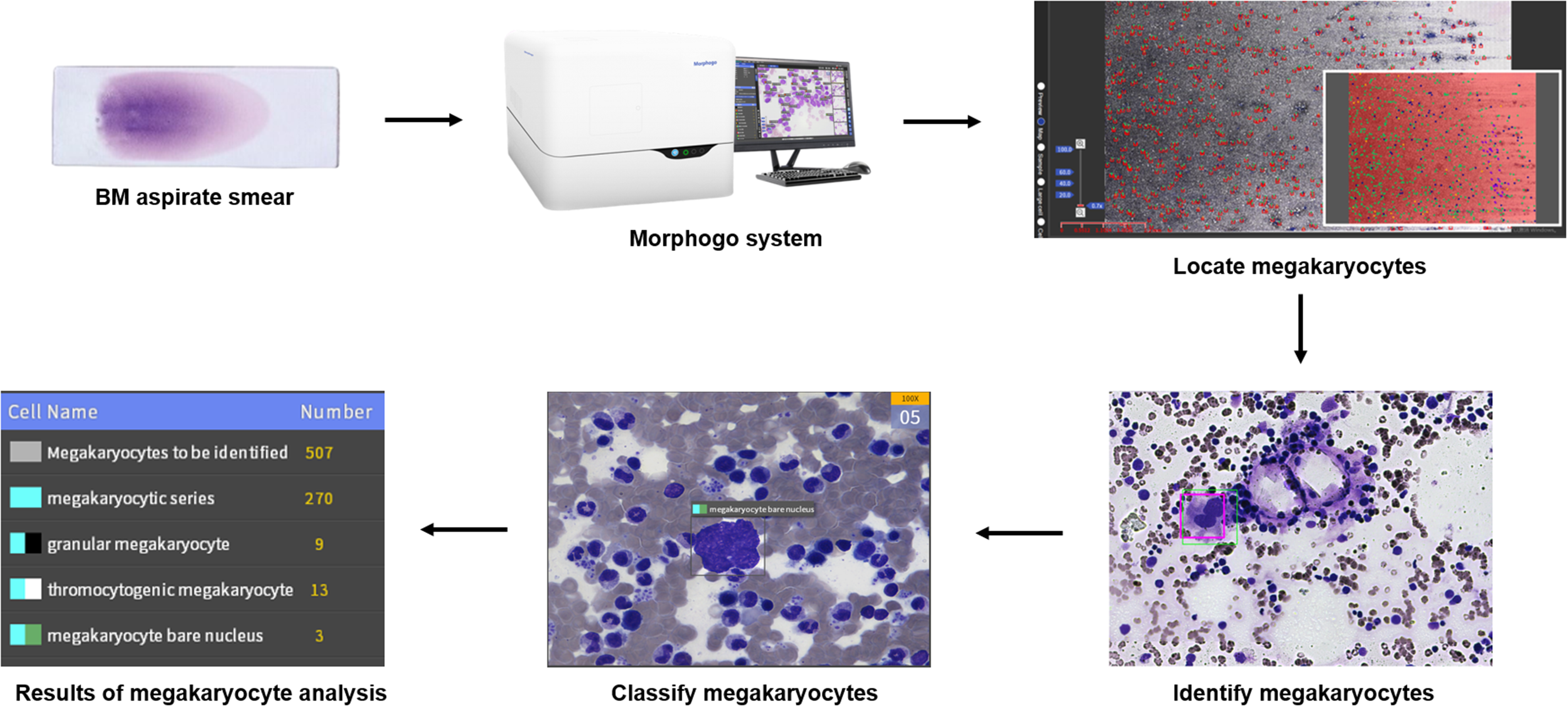 Morphogo system is reliable in automatic identification, counting, and classification of megakaryocytes in BM aspirate smears, and can assist pathologists in the early diagnosis and monitoring of hematologic malignancies.
