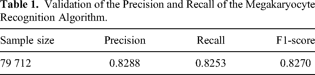 Validation of the Precision and Recall of the Megakaryocyte Recognition Algorithm.
