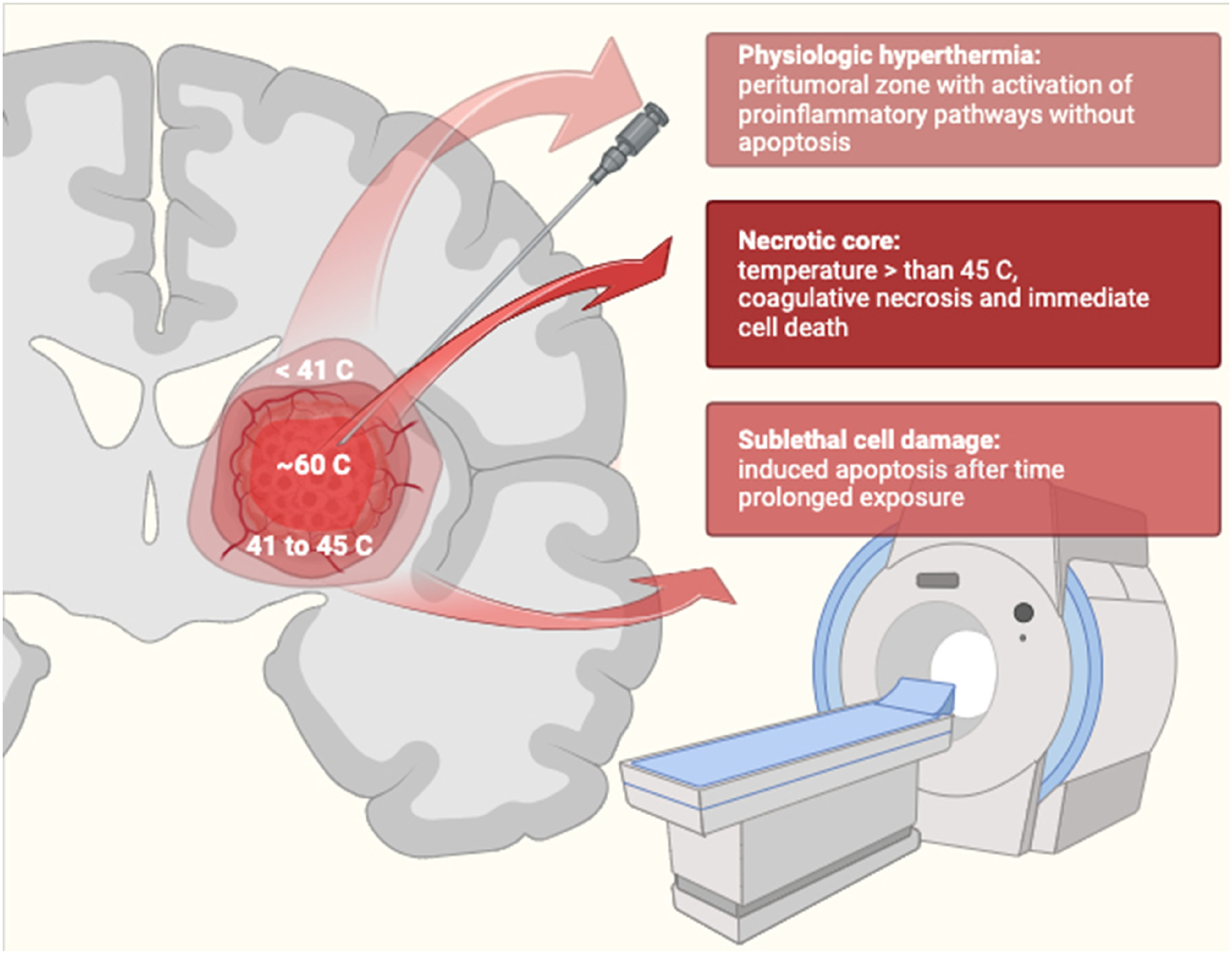 Schematic representation of Laser Interstitial Thermotherapy (LITT) mechanism of action.