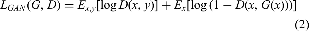 Equation (2) is the adversarial loss function for Pix2Pix, where