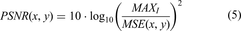 PSNR is an important indicator for evaluating image or signal quality. It is mainly used to measure the similarity between the generated image and the real image, and is especially widely used in the field of image compression and reconstruction. Higher PSNR values indicate greater similarity to the original image, with the formula defined as: