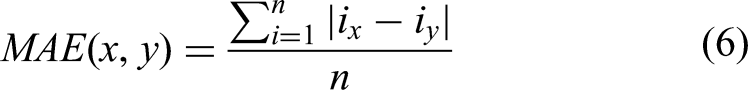 MAE is a widely-used metric for assessing image quality, quantifying the discrepancy between a generated image and its corresponding real image. It is calculated by taking the absolute differences between the true pixel values and the predicted pixel values, summing these differences, and then averaging them. A lower MAE value indicates a higher degree of similarity between the generated and real images, thereby reflecting the superior performance of the image generation model, The NMAE is computed after mapping model outputs and ground truth from the [−1, 1] preprocessing range to [0, 1]. Thus, NMAE ∈ [0, 1], where 0 represents perfect agreement and 1 indicates maximal deviation: