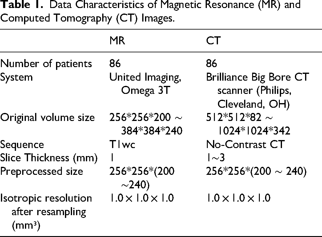 Data Characteristics of Magnetic Resonance (MR) and Computed Tomography (CT) Images.