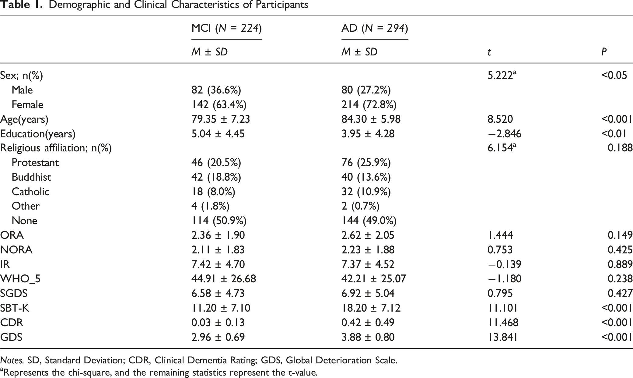 Demographic and Clinical Characteristics of the MCI and AD Groups