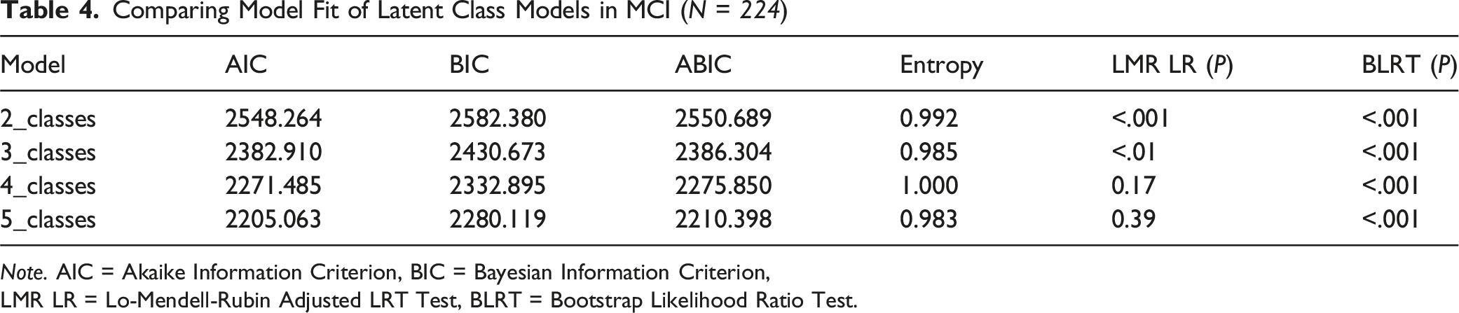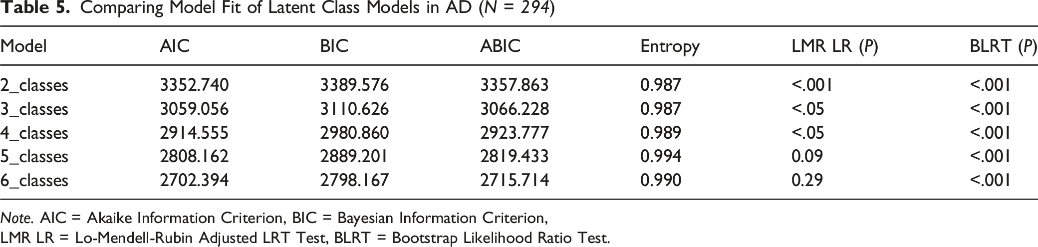 LMR LR = Lo-Mendell-Rubin Adjusted LRT Test, BLRT = Bootstrap Likelihood Ratio Test.