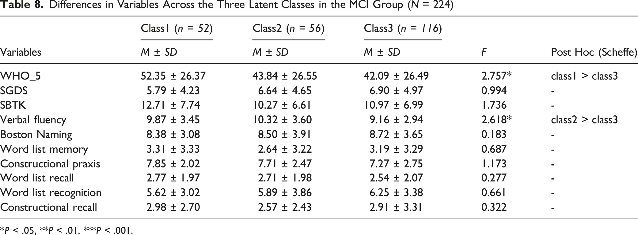 Differences in Variables Across the Three Latent Classes in the MCI Group (
