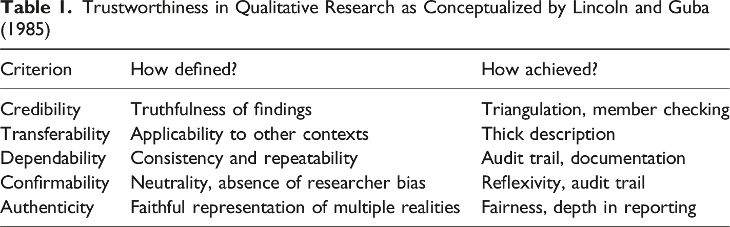 Trustworthiness in Qualitative Research as Conceptualized by Lincoln and Guba (1985)