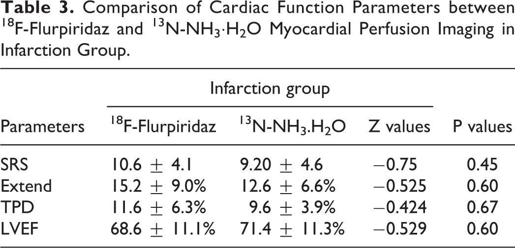 Comparison of Cardiac Function Parameters Between 18F-Flurpiridaz and 13N-NH3·H2O Imaging in Infarction Group