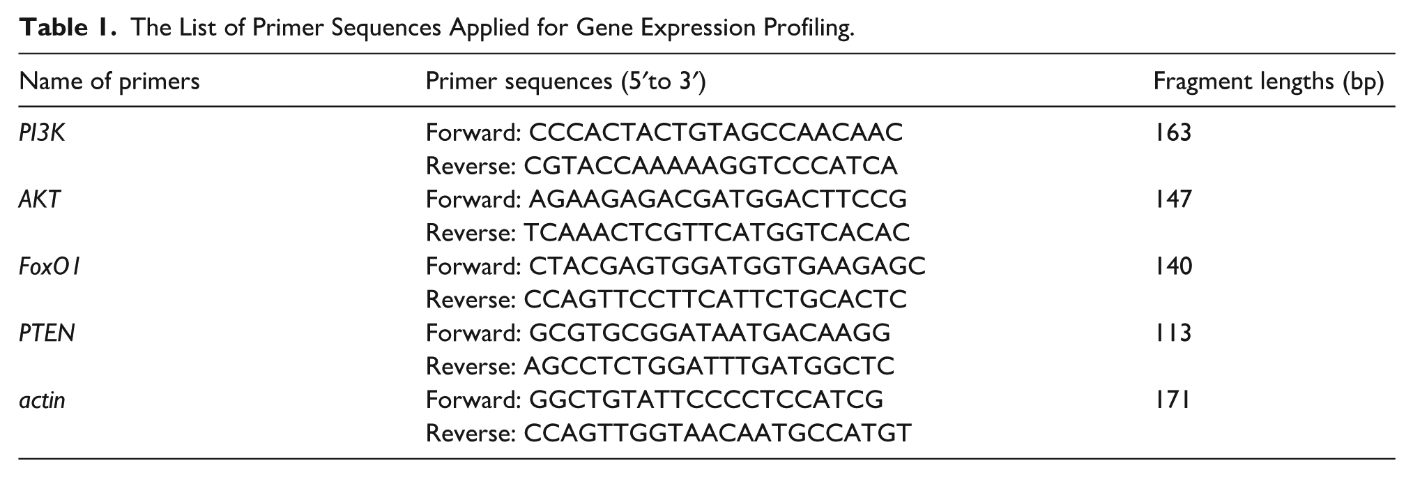 Following amplification, a melting curve analysis was performed to confirm the amplification of a single, specific PCR product. In this experiment, β-actin served as the endogenous control gene. The 2−ΔΔCt approach was applied to determine relative expression levels of the genes of interest. Final results were presented as fold changes compared with the control group, which was normalized to 100%. The corresponding primer sequences are listed in Table 1.