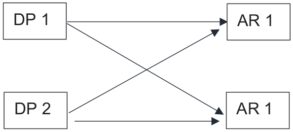 Remark 1: Axiom 1c is valid due to the nature of an affective or emotional response from humans. Suppose there are two requirements on affective responses to an apparel product under design, denoted as AR 1 and AR 2 (AR: aesthetic requirement). For instance, AR 1: elegant, AR 2: beautiful. First, an apparel to a wearer, which makes the wearer look elegant, may make the wearer look beautiful as well. Second, the DP 1 (to achieve AR 1) and DP 2 (to achieve AR 2) are inevitably coupling (Figure 2). This point has also been demonstrated by the computer aided system for aesthetic design for apparel products.26,27 Indeed, a design parameter for AR 1 can hardly be made with no influence on AR 2, and vice versa. Indeed, our experience is such that an emotional response is always emergent from various structural elements or DPs in the context of design.