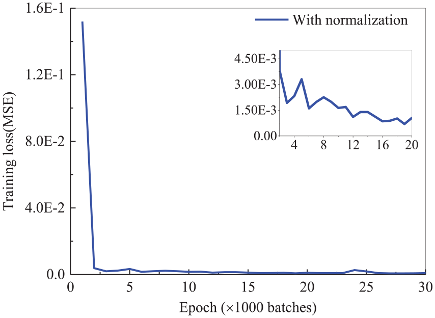The relationship between training epoch and training loss when normalization was used in training Rec3FDNet.