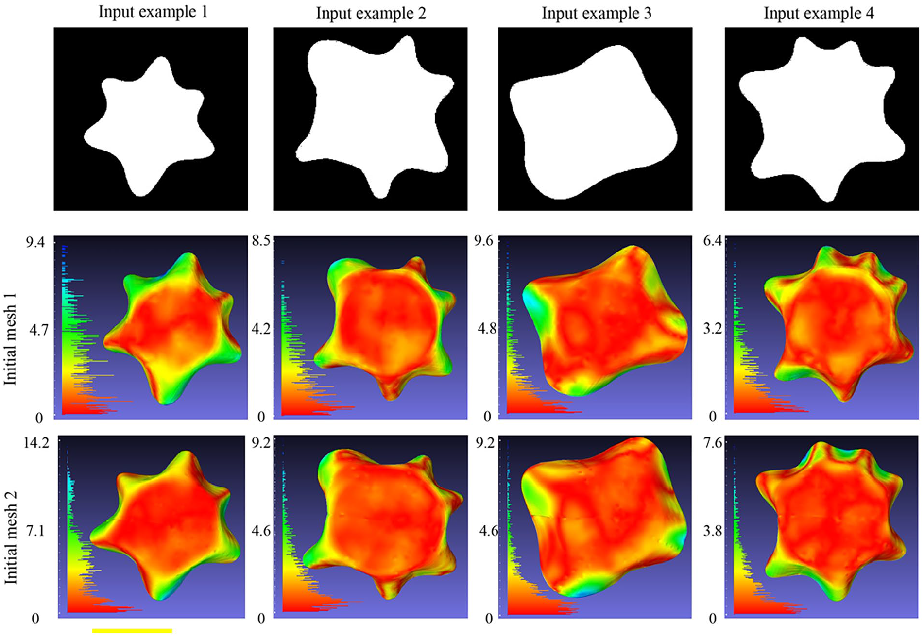 Reconstructed triangular meshes of initial mesh 1 and initial mesh 2.