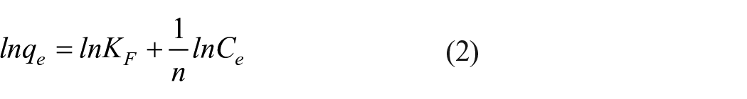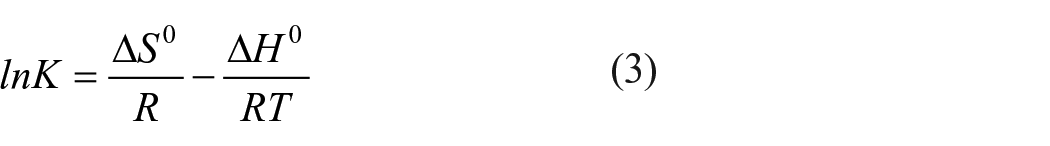 The influence of temperature can also be studied by isothermal adsorption and adsorption thermodynamics. The linear formulas of Langmuir and Freundlich isotherm adsorption models are shown as equations (1) and (2), 104 and the thermodynamic related formulas are expressed as equations (3)–(5). 105