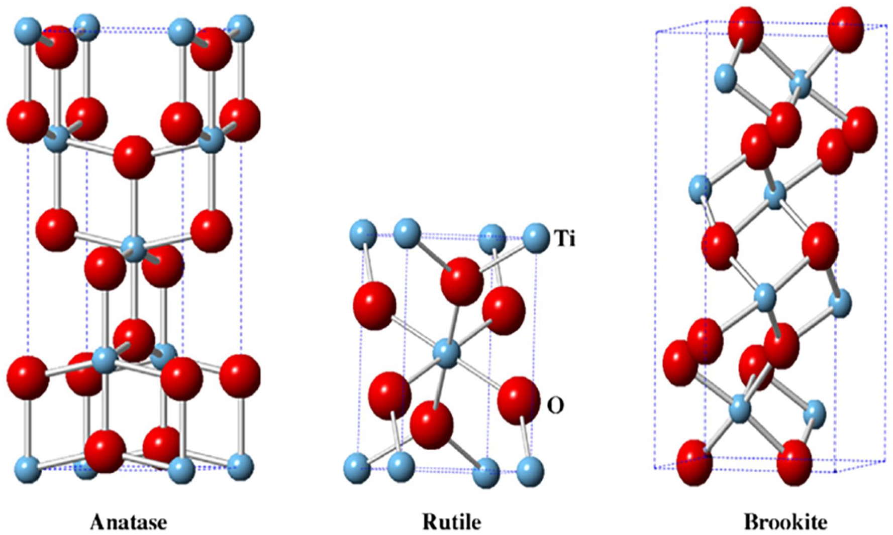 Crystal structure of anatase, rutile, and brookite. 121