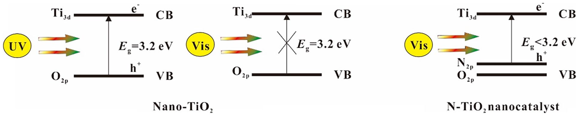 Excitation of nano-TiO2 and N-TiO2 nanocatalyst.