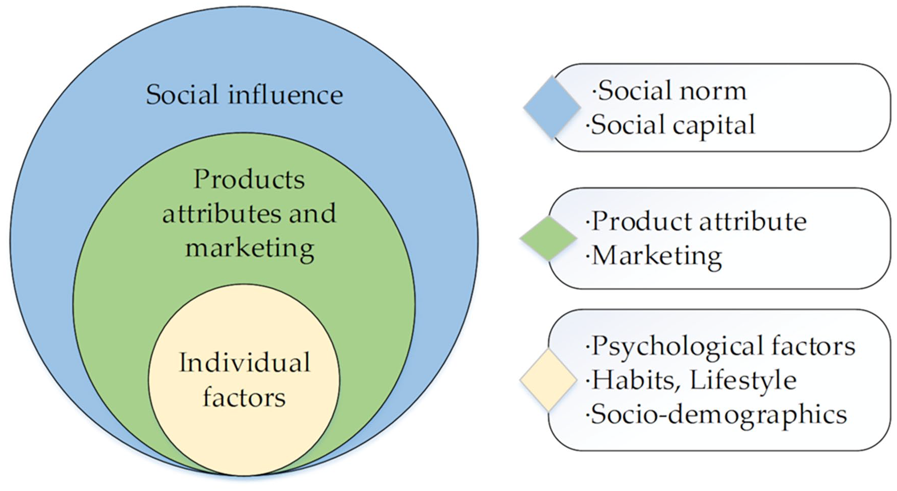 Categorization of factors influencing green purchasing decisions.