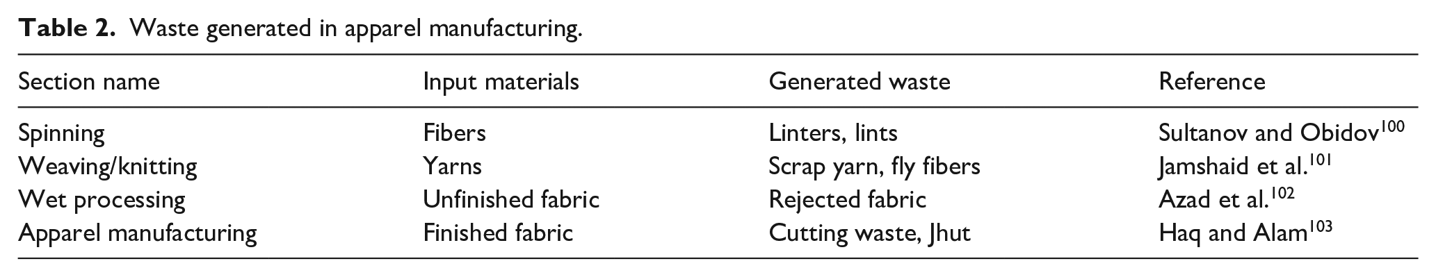 The use of recycled textiles in garments production is a significant step toward eco-conscious style which aims to reduce the already devastating impact of the fashion industry on the environment. This trend is about as progressive as fashion gets. This creative method gives previously used or discarded items a new life as an item of clothing. Reusing and recycling garments has many benefits, including reducing landfill waste, minimizing the demand for new raw materials. Thus, the fashion industry’s carbon footprint, reducing the amount of energy, water and chemicals used in production.96,97 It can promote resource efficiency and a circular economy based on the principle of maximum cascading of materials. Clothing manufactured from recycled textiles encourages male consumers to be more conscientious of the impact on the environment at the point of sale.98,99 This expanding market for recycled apparel is indicative of a broader trend toward sustainable fashion. As large fashion houses embrace what they perceive as sustainability practices, such as the use of organic or sustainably sourced materials in the production. The rapid expansion of recycled textile (yarn) clothing into a full-fledged industry is proof of sustainable fashion. In the fight for a more ethical and environmentally friendly fashion industry, it is a giant leap forward. They need to be recruited from the production departments. It needs to be “picked” for further processing because the various parts of the product ultimately produce waste streams. Table 2 gives an overview of the generated waste in every step of apparel manufacturing