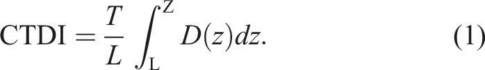 Equation (5) explains one of the advantages of the American Association of Physics in Medicine (AAPM) dosimetric approach. It enables the assessment of (CTDIvol) by performing central cumulative dose (DL′ (0)) measurements for L′ = 100 mm on clinical scans. 10 The purpose of the present study was to estimate the CT dose index for head and body PMMA phantoms and to determine the accuracy of the CT radiation dose parameter displayed on the CT scanner console. 9 The CT dose index was estimated using the American Association of Physics in Medicine (AAPM) Report 96 formalism. The study was performed on a Philips 16-slice CT scanner with a 100 mm pencil ionization chamber. The measured body and head phantom doses were compared to selected international dose reference levels and varying deviations were observed. The role of the medical physicist in this study is to track and measure the dose to patients using appropriate indicators.11,12