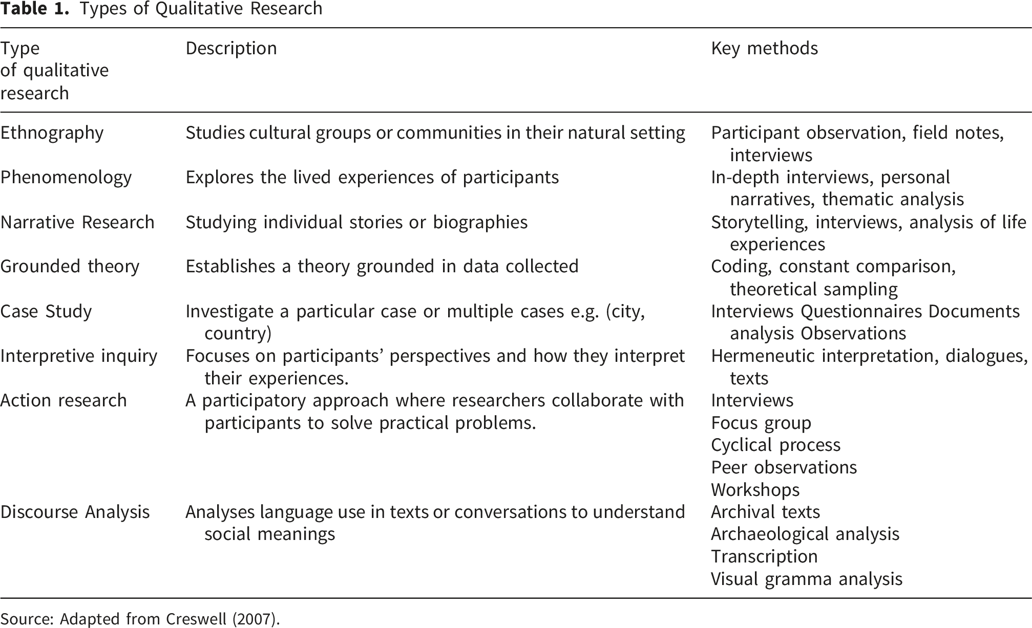 QR is a method that involves primary data collection where the researcher participates in the research through field observations, administering questionnaires, conducting key informant interviews, and setting up focus group studies (Creswell & Creswell, 2023). On the other hand, QR can be carried out by reviewing literature for example through desk research, document analysis, archival research content analysis, thematic analysis, meta-synthesis, and systematic literature reviews (Morse et al., 2002; Reynolds et al., 2011; Stenfors et al., 2020).