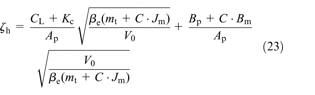 Besides, before practical application, it is necessary to evaluate the influence of an unpredictable factor, effective bulk modulus of oil, that can deform dynamic characteristic, because the hydraulic system is hardly isolated from air, and the hydraulic oil inevitably has dissolved air or even entrained air. 32 As demonstrated in Figure 13, the increase of effective bulk modulus of the oil dramatically effects the hydraulic natural frequency, which implies the importance of exhaust procedure in building up a hydraulic system.