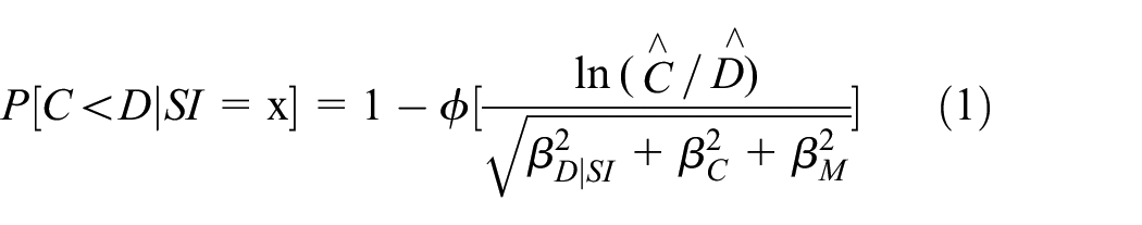 Seismic vulnerability describes the probability that a structure will reach a certain failure state at a given seismic intensity (SI), which is generally expressed as a logarithmic normal cumulative distribution function28,29 :