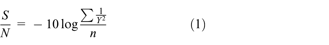 The data that was acquired in the mechanical experiments were analyzed through the Taguchi method where the signal-to-noise ratio (S/N) was determined on each experiment to determine the best conditions. A principle of optimizing the mechanical properties was the adoption of the Larger is better principle, and the S/N ratio was determined with the aid of the following equation: