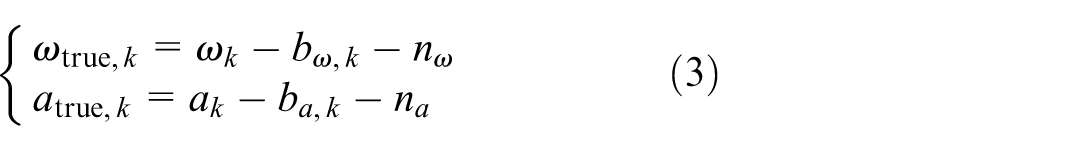 The raw measurement value of IMU contains three parts: real motion information, deviation, and noise. Directly using this raw measurement value may lead to the accumulation of subsequent pre integration errors. Therefore, the following formula can be used to obtain preliminary estimates of the true angular velocity