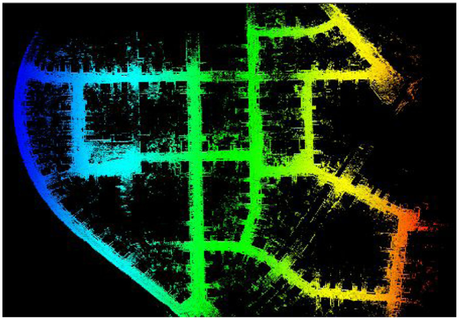 A single sensor cannot complete the global map construction in all scenes, while multi-sensor fusion can solve the limitations of a single sensor and provide more accurate, efficient and adaptable SLAM results. The fusion of lidar and Inertial Measurement Unit (IMU) can overcome the problems of low vertical resolution of lidar, low update rate and motion-induced distortion, during laser SLAM. The LOAM approach relies on the IMU to solve the orientation, as an aid, using the IMU as source of a priori information for the whole system. However, it uses a loosely coupled lidar and IMU, while it cannot use IMU measurements for further optimization. LIO_mapping 30 proposed for the first time a tightly coupled lidar_IMU fusion method. By jointly optimizing the IMU and lidar measurements, there is no significant drift short-term, even with lidar degradation. On the other hand, the tightly coupled algorithm has high complexity and poor real-time performance. SHAN presented LIO_SAM, based on their proposed LEGO_LOAM, using IMU and lidar tight coupling. 31 The algorithm applies a factor graph framework, fusing IMU pre-integration factors, odometer factors, GPS factors and closed-loop detection factors, to obtain better real-time performance and accuracy in building the graph and positioning. Fast_LIO 32 reduces the computational complexity, from the measurement dimension to the state dimension, by an equivalent Kalman formula, while the computational efficiency is significantly improved. Based on Fast_LIO, the original authors also proposed the Fast_LIO2 33 lidar inertial odometer framework, which directly aligns the raw point cloud to the map, while at the same time introduces the ikd_tree data structure, to maintain the map, supporting incremental updating and dynamic balancing, which further improves the computational efficiency, but has poor robustness in the face of feature deficient environments. In recent years, the Point_LIO 34 laser inertial odometry method has been proposed, which uses a single point cloud as the data processing unit, updates the state of each point, and has extremely high odometer output frequency and bandwidth.