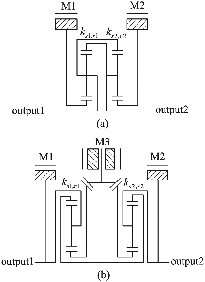 For the first type, the output speed and torque are uniquely determined by the speed and torque of outputs. Therefore, the efficiency of transmission depends on the parameters of the system. For the second type, the speed and torque of input motors are not uniquely determined by the output speed and torque, but infinite. Therefore, the efficiency of the system not only depends on the parameters of the system but also the speed or torque distribution of motors.