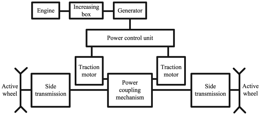 The design of a transmission involves not only finding the configuration that provides the correct output speed but also delivers necessary output torque. To achieve the skid steering, the two side tracks should be independent in their motion velocity and the force transmitted to the ground. Therefore, the two outputs also must be independent in their speed and torque. To address this, a system configuration synthesis method of transmission for electric-drive tracked vehicles is proposed in this article based on kinematics and statics.