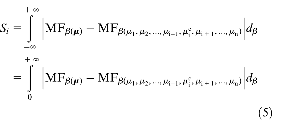 In section “Uncertainty analysis of system with the mixed uncertainties,” we have investigated UA of systems subjected to both aleatory uncertainties of system inputs defined by PDFs and epistemic uncertainties of imprecise mean vector defined by fuzzy sets using MFs. Next, we will propose an SAI to measure the effect of an imprecise mean with epistemic uncertainty defined by a fuzzy set using MF on system output performance, and a discussion on the proposed SAI will be given.
