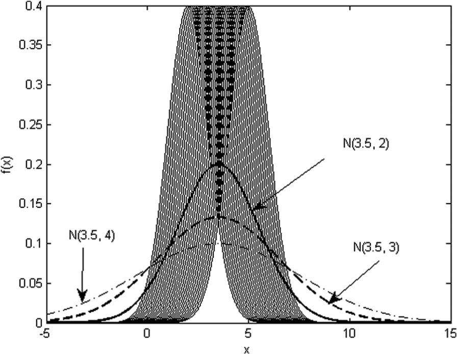 Detailed discussions on the characteristics, similarities, and differences for aleatory uncertainty and epistemic uncertainty can be found in the literature.41–44 More discussions on the mixture of aleatory and epistemic uncertainties both described by the PDFs can be found in the literature.34–39 We will focus on equation (1) with the mixture of aleatory uncertainties described by PDFs and epistemic uncertainties defined by fuzzy sets using MFs. System inputs are independent normal inputs with mean vector and standard deviation vector , and mean vector are imprecise due to epistemic uncertainties, which are defined by fuzzy sets using MFs. It is supposed that imprecise mean has the following MF