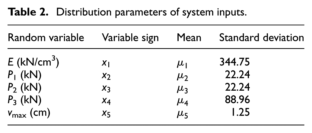 It is important to note that the computational cost involved in the proposed method consists of evaluations of the performance function at the to obtain a set of the input–output IS PDF samples , as shown in step 2. In addition, for other epistemic variables can also be estimated using the same set of IS PDF samples . Thus, compared with the direct sampling–based procedure in section “Direct sampling-based solving method,” the proposed method requires fewer evaluations of performance function and lower computational cost.