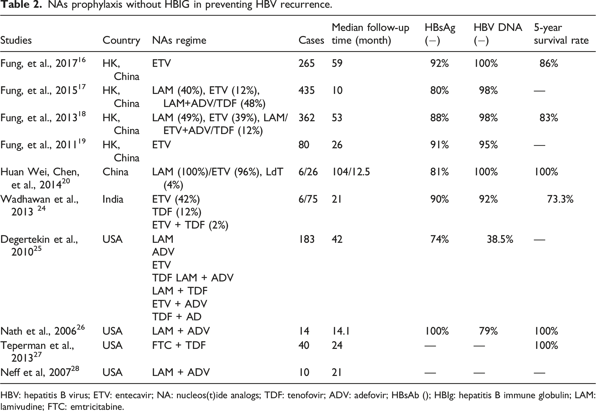 NAs prophylaxis without HBIG in preventing HBV recurrence.