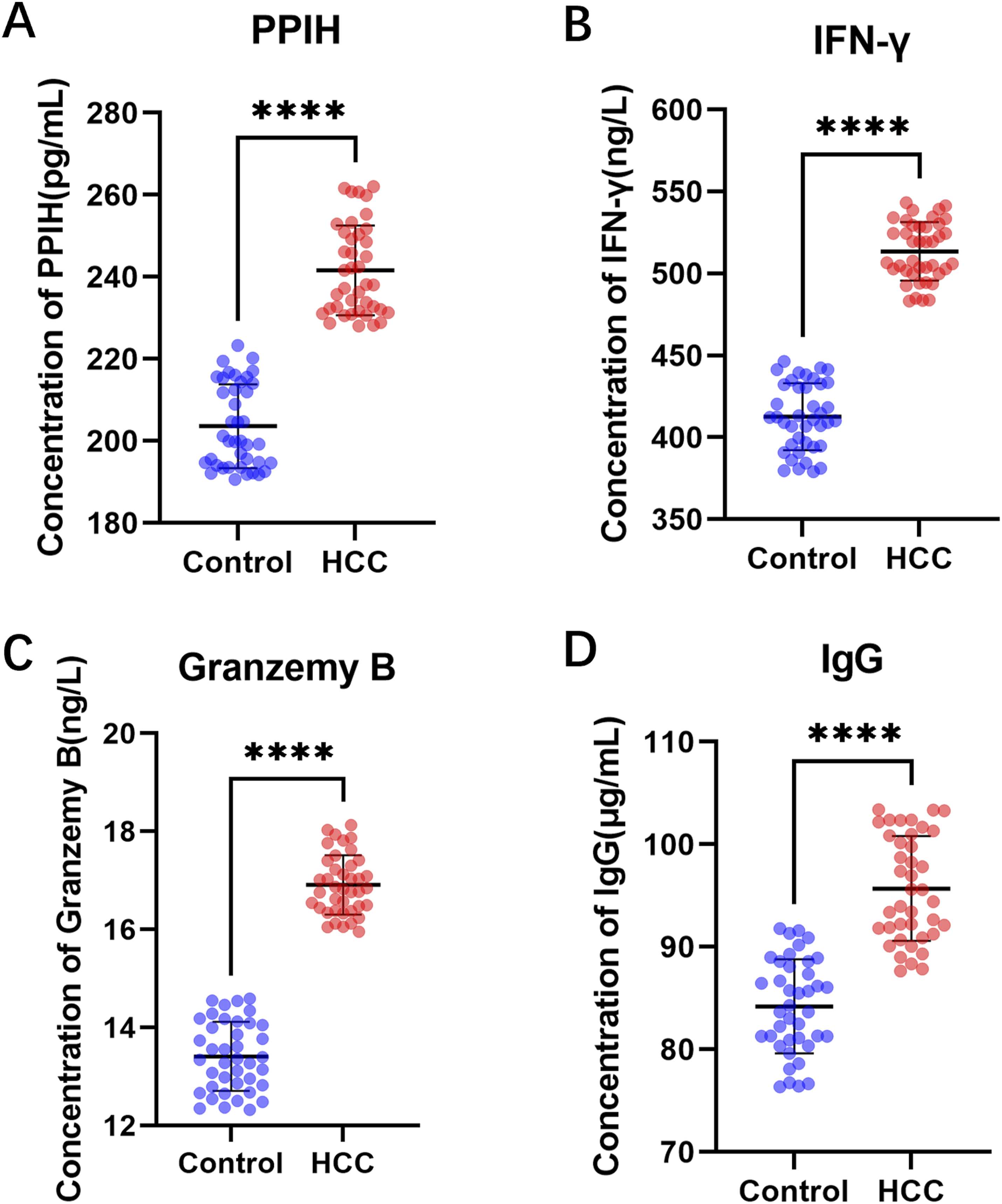To investigate the effect of Serum PPIH、IFN-γ、Granzyme B and IgG levels of HCC patients.