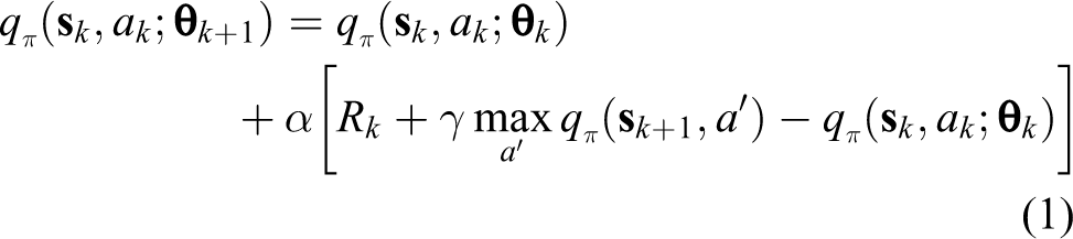 Reinforcement learning constructs optimal mapping relationships between states and actions by estimating how humans would respond to external signals. 22 The deep Q-network (DQN), 23 a representative reinforcement learning framework that uses a Q-network to represent state spaces and evaluate actions, provided an attractive end-to-end architecture mapping raw high-dimensional sensing data for robotic action decisions. We modeled the robot navigator based on DQN, due to its high generality and simpler architecture for single networks, compared with other DRL frameworks. The mathematical model of the navigator, based on MDP, 21 is presented below.