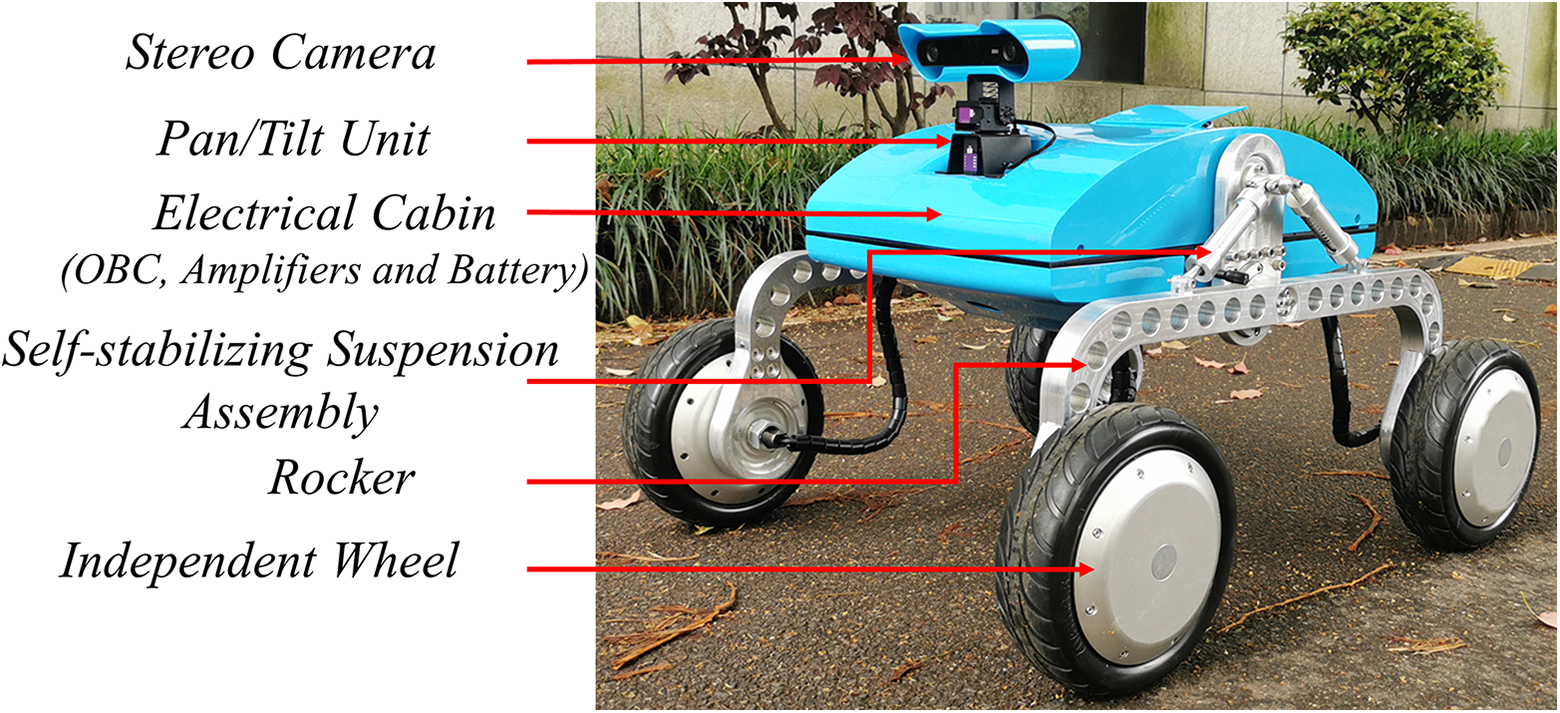 The performance of the proposed method is evaluated through real-world comparative experiments. As shown in Figure 16, we conducted field tests using the developed robotic follower and an analog astronaut at a Mars-like site in Huzhou, China, in February 2022. A ZED 2 camera 28 was installed in front of the robot to detect the astronaut and collect depth information from obstacles. An efficient DCNN-based human detection algorithm 26 was adopted to locate the astronaut and estimate the walking trajectory. The following strategies and the astronaut detection module were run by an onboard NVIDIA Jetson TX2 controller. 29 In addition, an ultra-wideband (UWB) location system was employed to accurately record the trajectories of the astronaut and the robot, as well as the position of obstacles, but only for the purpose of obtaining quantitative experimental results.