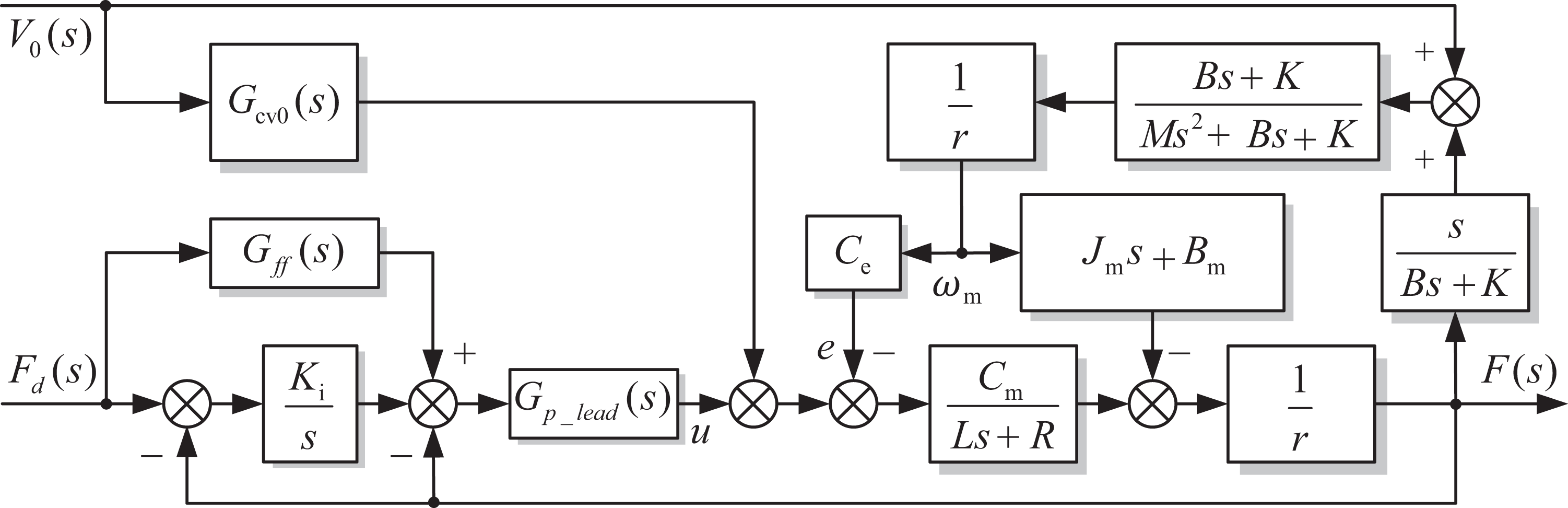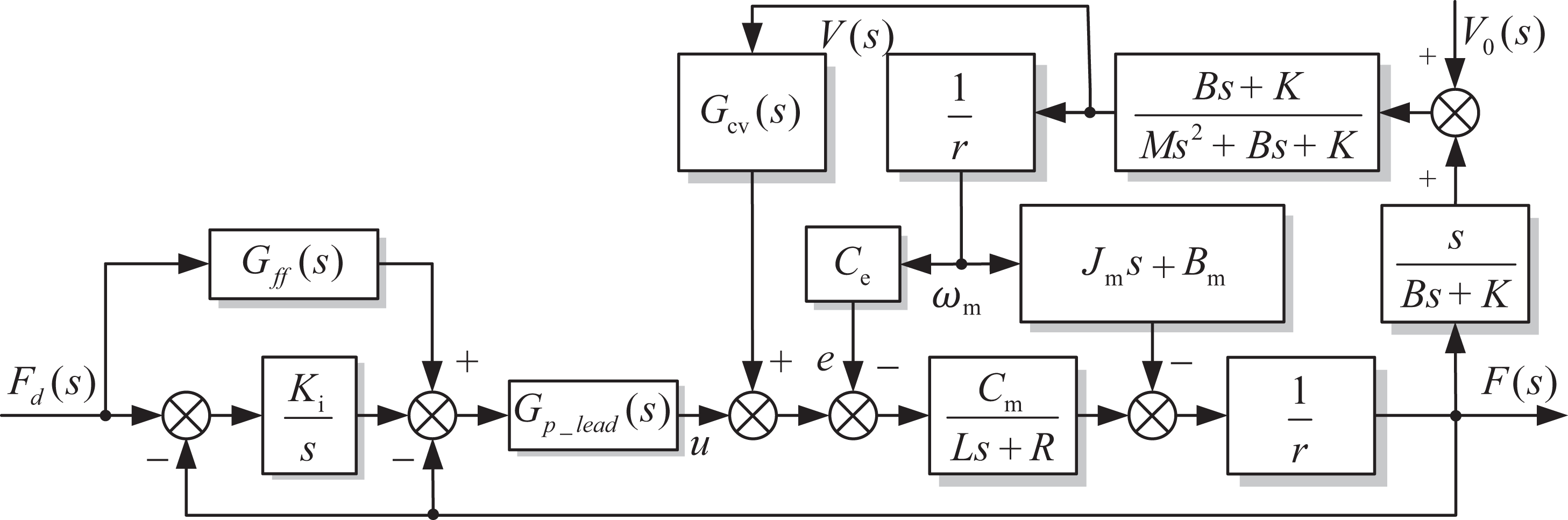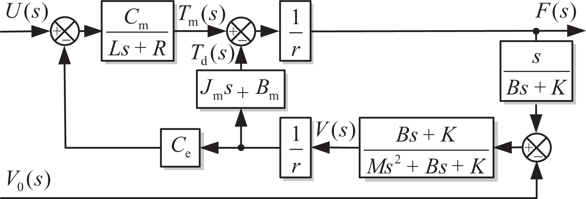 From Figure 4, under consideration of the influence of the motion of the carrying unit, the transfer function of the wire driving passive force servo system is