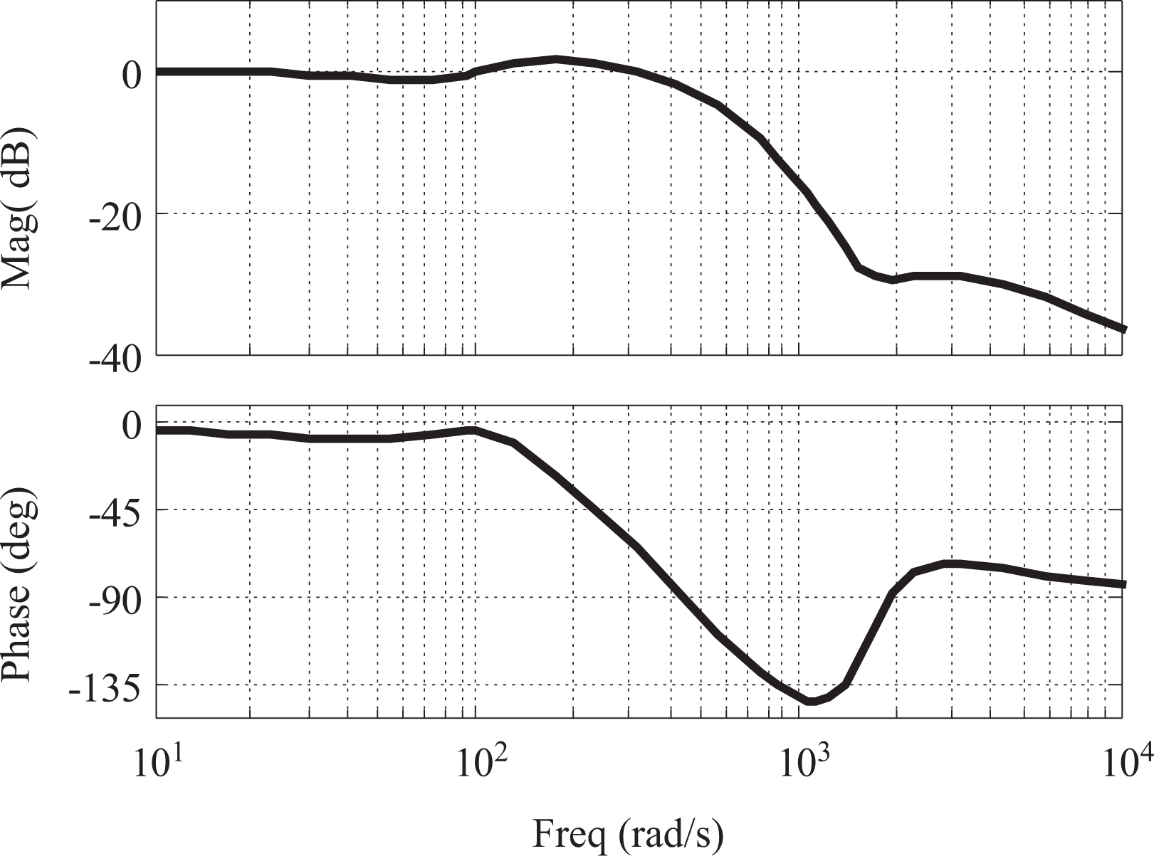 In equation (15), the time constant of the filter link is 0.01. By further observations, it can be found that the compensation link after adding a filter link has a pair of zero (
